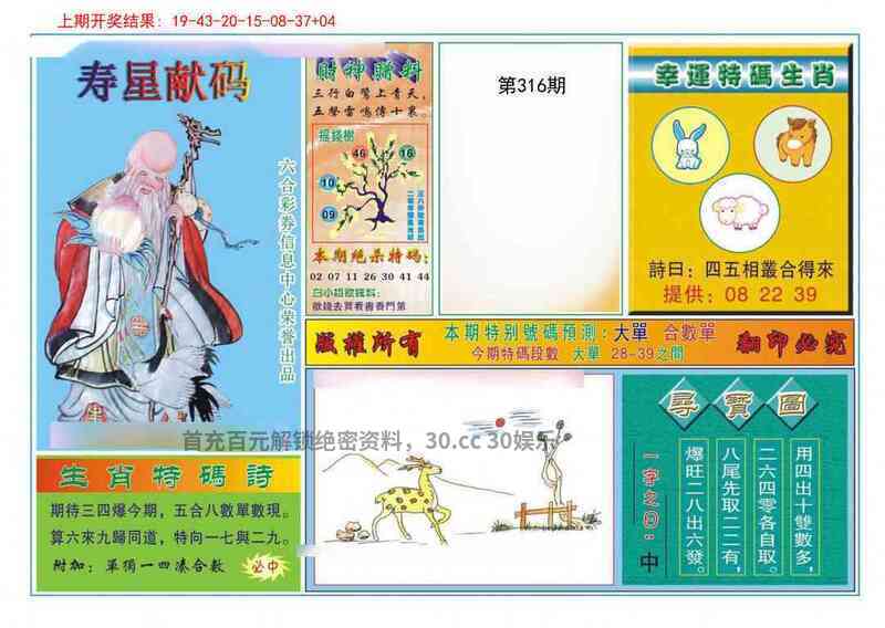315期:七肖【鼠羊兔鸡牛猴】开:虎04准